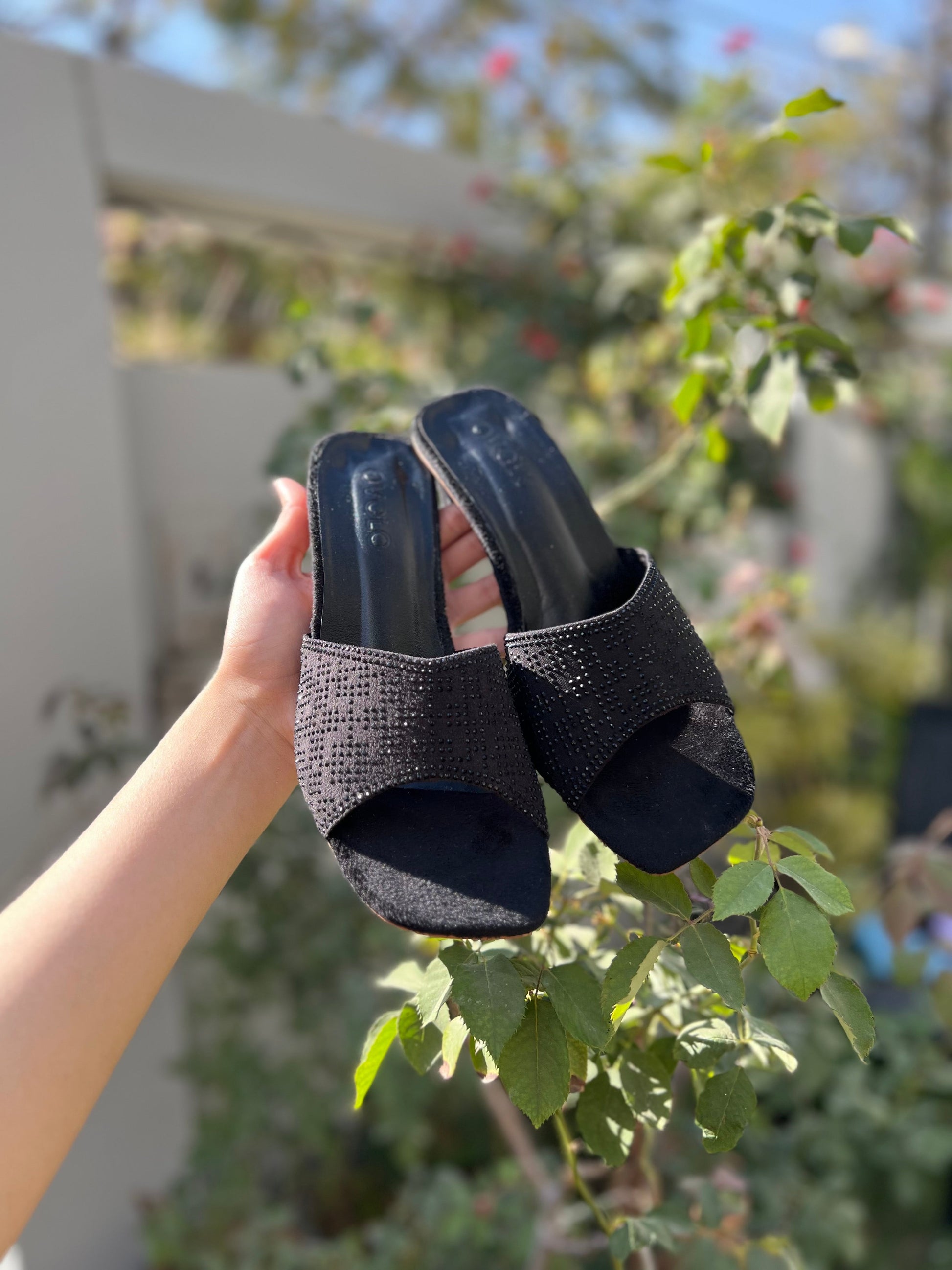 Add some sparkle to your feet with these fancy heels! The elegant design is accentuated by rhinestone studs, Perfect for adding a festive touch to any outfit. Step out in style with these festive heels.